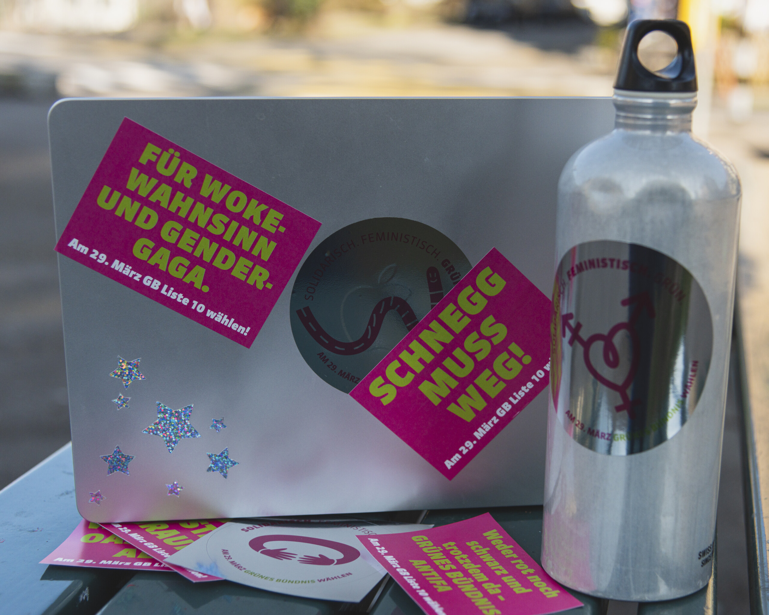 Wissen deine Freund*innen, dass im Kanton Bern in drei Monaten wichtige Wahlen anstehen? Nein? Kein Wunder: Im letzten kantonalen Wahljahr 2022 lag die Wahlbeteiligung in der Stadt Bern bei nur 31 %! Für die linksgrünen, progressiven Kräfte ist diese tiefe Stimmbeteiligung in der Stadt besonders gefährlich. Mit unseren Stickern wollen wir daher möglichst viele  Stadtberner*innen davon überzeugen, bei den kantonalen Wahlen das Grüne Bündnis zu wählen. Hilfst du mit?